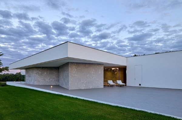 來自Mobius Architekci的首席建筑師Przemek Olczyk將建筑雕刻在場地的山坡上,創造了一個超過1500平方米的現代和寬敞的住宅。從山坡上緩緩升起的寬闊結構,在有機形狀的身體內經歷了碎片化。立體主義的形式和尖銳的線條,切出了半開放的中庭,提供了親密感,使光線滲透到室內。