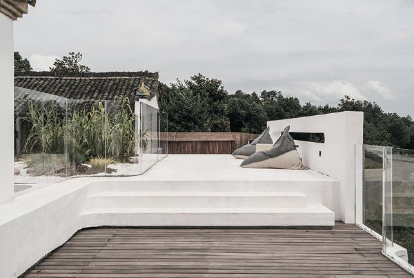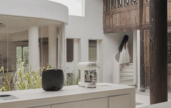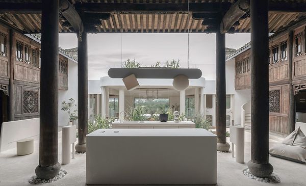 保持中國文化特色,木質結構被保留下來,以現代的形狀來支持基礎設施。極簡的幾何形狀補充了傳統設計,形成了新的休閑和茶會空間。充分展示傳統風格建筑,建筑師增加了現代家具,以喚醒當代和傳統的交匯意識。屋檐下懸掛定制的吊燈,為空間提供了復古的美感。