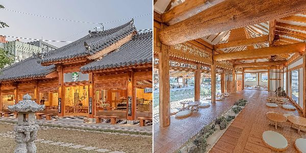 星巴克在韓國大邱的新店重現了歷史悠久的韓屋的氛圍。崇高的、充滿陽光的室內空間將干式花園融入地板,而房間則向安靜的室外花園開放。該空間占地199坪(約7000平方英尺),120個座位。其中許多座位被安裝在歷史悠久的房子的鑲木地板上,可以直接望向花園。