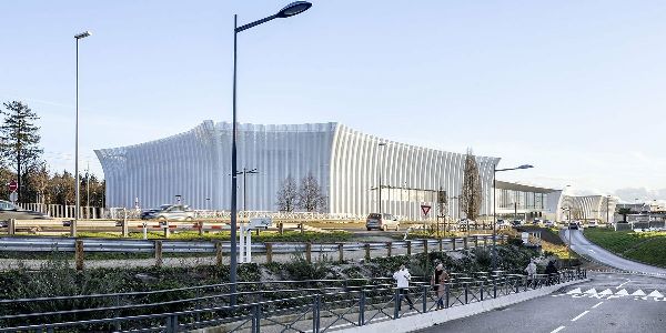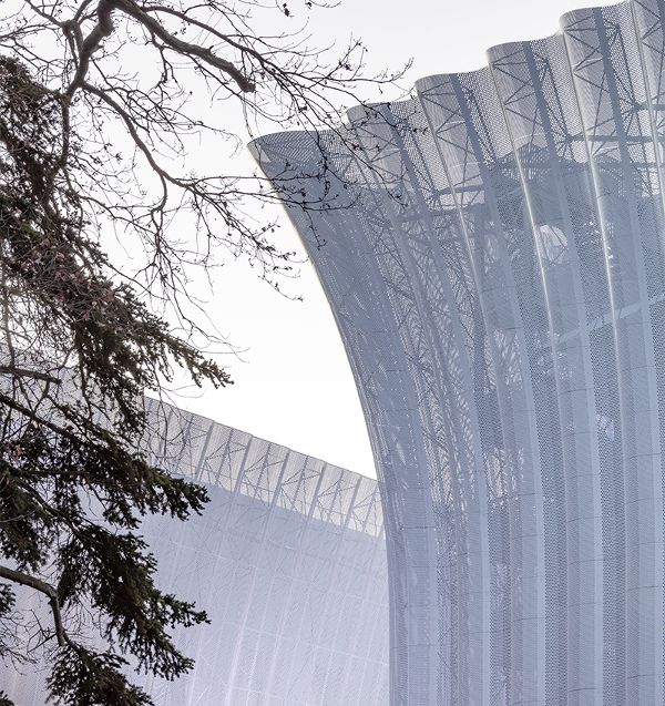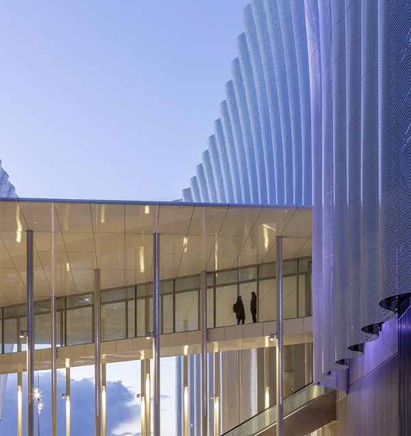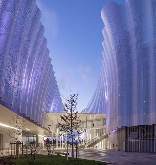 建筑師Ferrier Marchetti Studio設(shè)計(jì)的CO'Met Arena擴(kuò)大了其起伏的表皮結(jié)構(gòu),使結(jié)構(gòu)更加輕盈和流暢。作為大型功能體量的對(duì)立面,外墻塑造了一個(gè)流動(dòng)和柔軟的建筑,并延伸到所有的設(shè)施,覆蓋了會(huì)議、展覽和體育中心的外表面。金屬板形成了統(tǒng)一的圖案,并以曲線的變化作為點(diǎn)綴,使微妙的光線通過(guò)穿孔的平面進(jìn)入。輕質(zhì)的半透明表皮采用了天空和周?chē)喞惋L(fēng)景的顏色。建筑物的入口是通過(guò)一個(gè)連接設(shè)施體量的大型露天雨棚實(shí)現(xiàn)的。該項(xiàng)目是一個(gè)雄心勃勃的可持續(xù)發(fā)展方法的一部分,因?yàn)樗鼡碛蟹▏?guó)最高效的體育項(xiàng)目的能源消耗。體積完全由地?zé)崮茉刺幚?,而建筑顯示出極大的節(jié)儉,重點(diǎn)是輕質(zhì)外墻的設(shè)計(jì),避免使用過(guò)多的材料。
