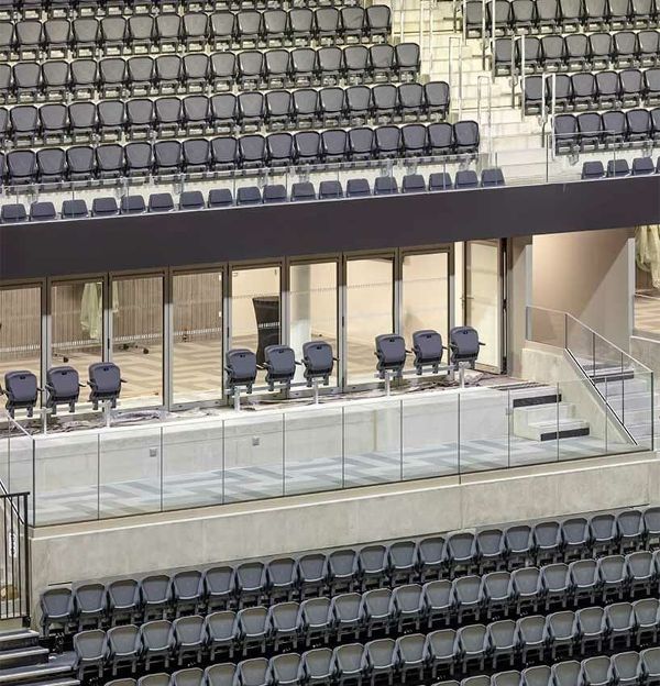 在室內(nèi)空間,混凝土結(jié)構(gòu)裸露在外,沒(méi)有添加任何材料。最少的資源消耗創(chuàng)造了寧?kù)o而堅(jiān)實(shí)的風(fēng)景,與活動(dòng)的氣氛相得益彰。 標(biāo)牌干預(yù)直接應(yīng)用于混凝土墻并融入建筑。為了應(yīng)對(duì)氣候問(wèn)題,該項(xiàng)目側(cè)重于實(shí)施多功能的高效建筑計(jì)劃,以延長(zhǎng)設(shè)施使用的強(qiáng)度和時(shí)間段。 擁有 10,000 個(gè)座位的競(jìng)技場(chǎng)采用模塊化設(shè)計(jì),可適應(yīng)多項(xiàng)文化和體育賽事。會(huì)展中心作為場(chǎng)館和會(huì)展中心的直接延續(xù),根據(jù)功能需求,將全部或部分空間組合成多種場(chǎng)景。
