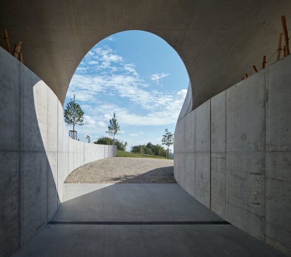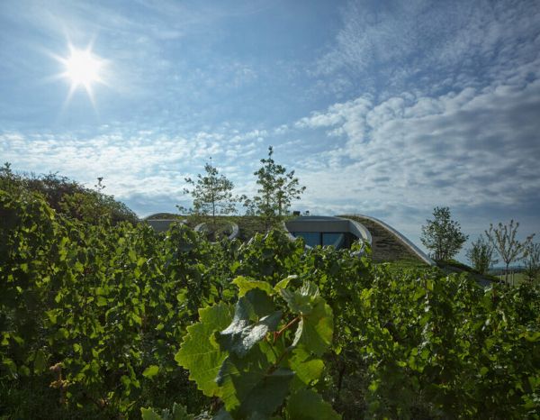 周圍地區被各種灌木和成熟的樹木精心點綴,有助于創造一個最佳的微氣候。酒廠戰略性地位于葡萄園之中,最大限度地減少了對原材料和工人的運輸需求。生產區巧妙地位于地下,而客戶區則通過玻璃幕墻擁抱自然陽光,利用被動能源來減少能源消耗。為了防止在炎熱的夏季出現過熱現象,該酒廠采用了隔熱的三層玻璃,結合木質橡木板條、充足的屋頂懸垂和帶防水布的涼棚遮陽。這些措施確保了最佳的溫度調節,同時保持了一個舒適的室內環境。雨水被收集在一個儲水池中,用于灌溉葡萄園。
