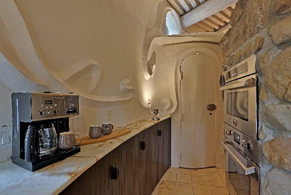 鯨魚屋坐落在圣巴巴拉橡樹和梧桐樹的幽靜風景中,是一件真正獨特的建筑作品。該項目由富有遠見的設計師邁克爾-卡邁克爾(Michael Carmichael)于 1978 年構思,他從標志性建筑師安東尼-高迪(Antoni Gaudí)以自然為基礎的作品中汲取靈感。這種影響可以通過房屋有機的、波浪形的外形和柔和的邊緣清晰地讀出--前衛的加泰羅尼亞風格通過美國鏡頭轉化為起伏的雪松木瓦表皮。因此,這棟房子看起來就像是偽裝在樹林中。蘇富比國際地產公司(Sotheby's International Realty)分享了鯨魚屋的圖片,邀請觀眾探索其獨一無二的內部裝飾。