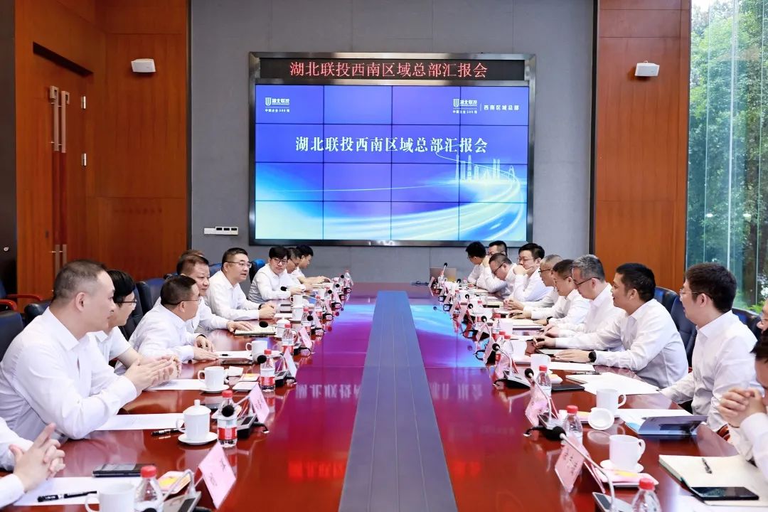 當天,劉俊剛、劉光輝一行還深入湖北聯投西南區域總部調研,汪繼明主持召開西南區域總部工作匯報會。湖北建投、湖北路橋匯報西南區域總部籌備情況及下一步工作思路,湖北工建、清能集團和東湖高新作為出資公司代表就推進區域總部建設分別發言。