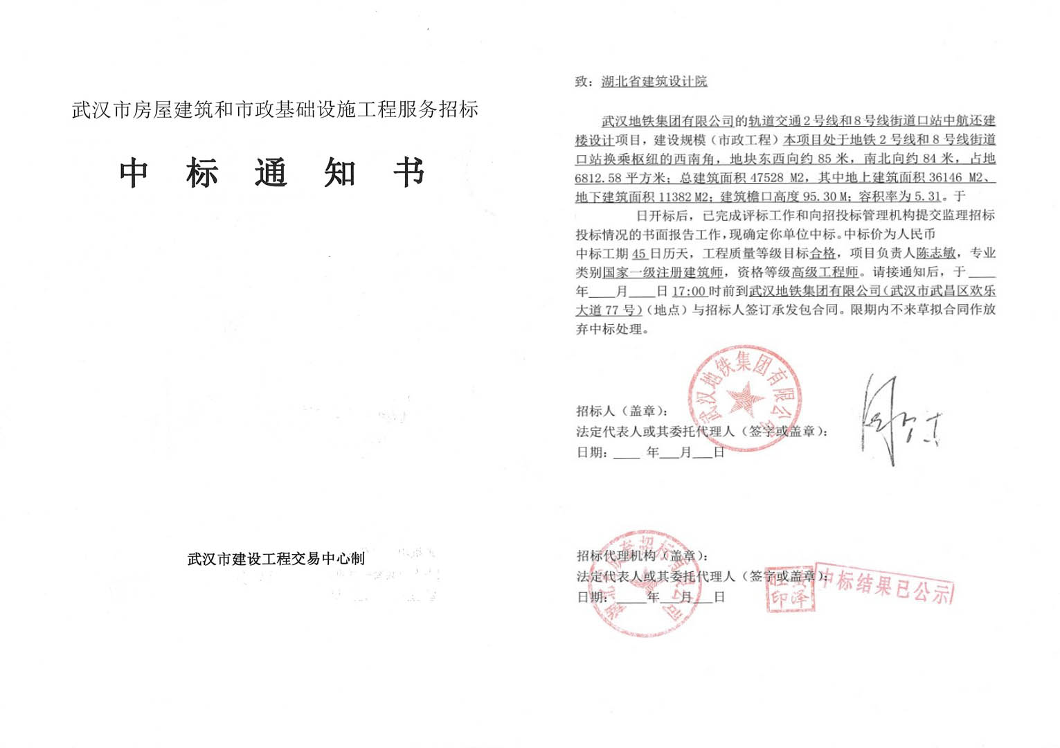 熱烈祝賀湖北省建筑設計院設計三所在“軌道交通2號線和8號線街道口站中航還建樓項目”設計競標中,精心組織,精誠協作,憑借良好的信譽、行業經驗、強大技術實力、完善的質量進度保證體系、合理的報價贏得了評標委員的一致好評,從眾多優秀設計企業中脫穎而出,一舉中標!