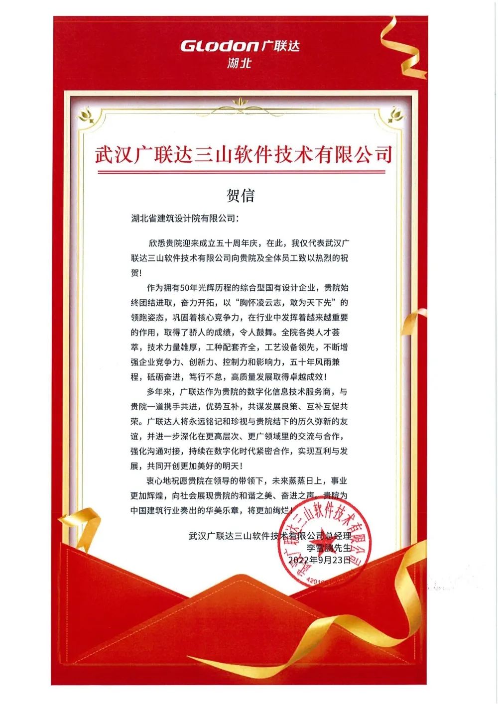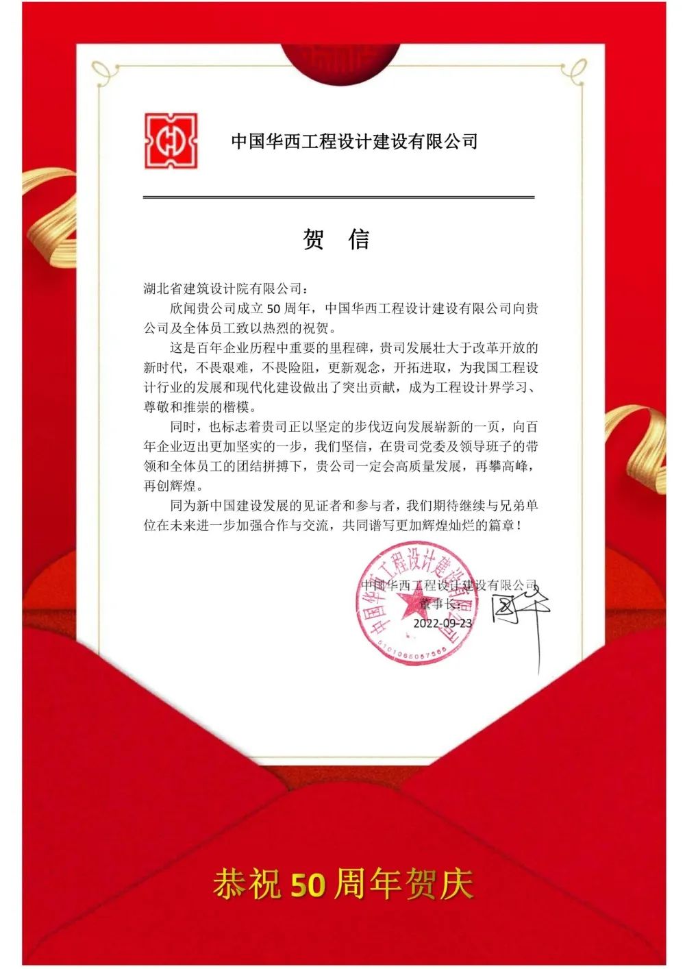 2022年是湖北省建筑設計院有限公司成立50周年。50載風雨兼程,50載碩果累累。廣大合作伙伴與我們一起,在市場開發、技術攻堅、科研合作等多方面充分發揮各自優勢,共同發展、資源互補、合作共贏,分享發展新機遇,共創發展新輝煌。